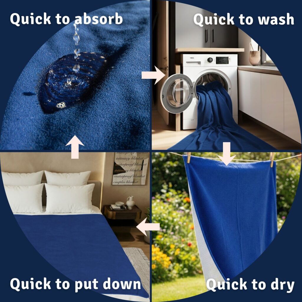 Perfect for beds, couches, cars, picnics, play mats, travel, pets, and anywhere you need quick-drying, easy-to-clean protection.