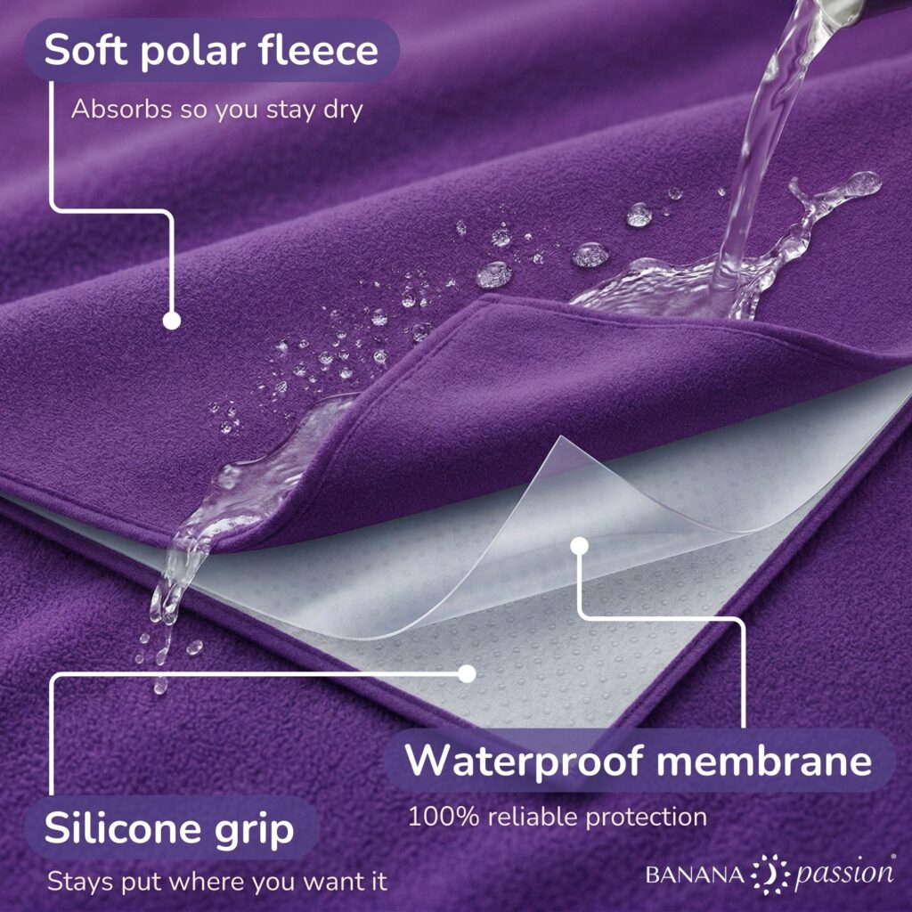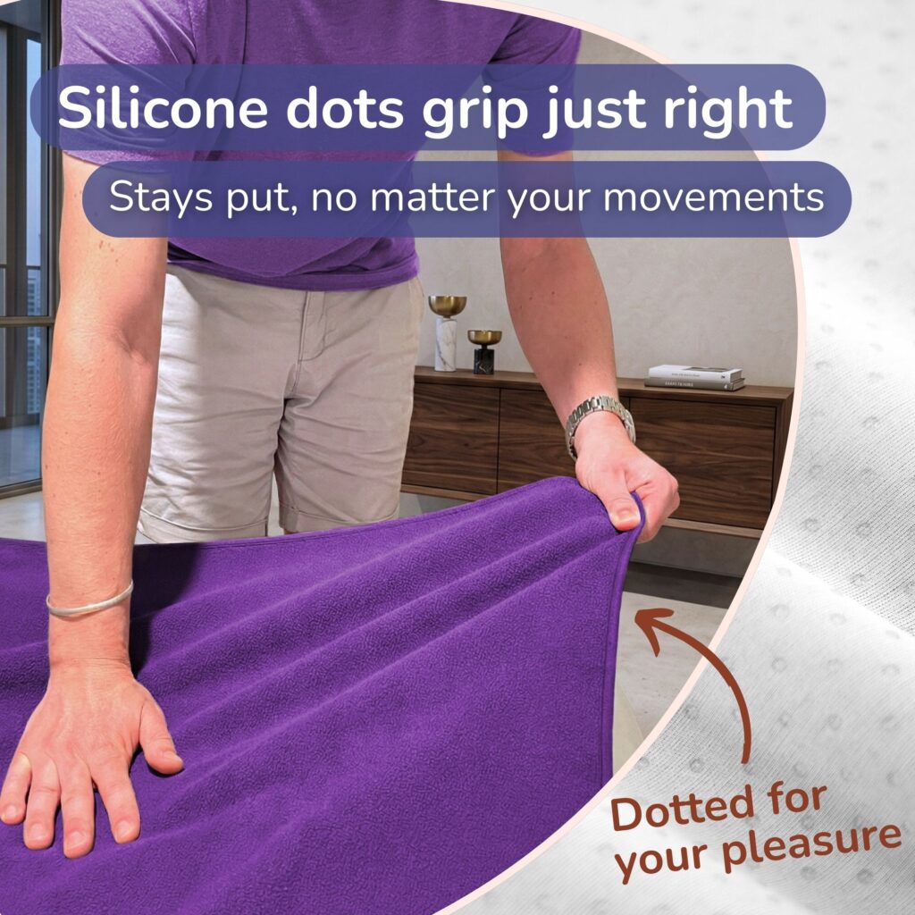 This GripMe waterproof blanket solves our customers’ three biggest frustrations: sliding, puddling and long drying times.