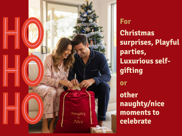 Bring Christmas magic to your home with our Premium Velvet Santa Sack, crafted from ultra-soft, carefully chosen velvet for a luxurious feel you’ll love. Generously sized at 70x50cm (approx. 27.5 x 19.7 inches), it’s perfect for fitting multiple or oversized gifts. Enjoy our eye-catching “Naughty or Nice” embroidery and the option to choose from four stunning colours, making every celebration unique and stylish.