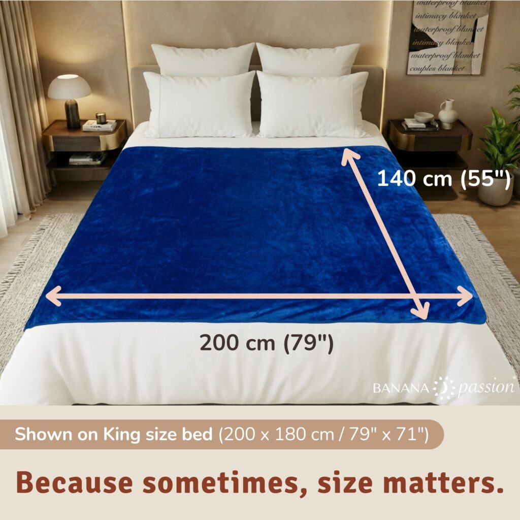 It is made for couples and anyone who wants a reusable waterproof blanket or love blanket, so you can sink into mess‑free bliss, fully relax, enjoy the moment and fall asleep on clean, dry sheets instead of changing all your bedding.